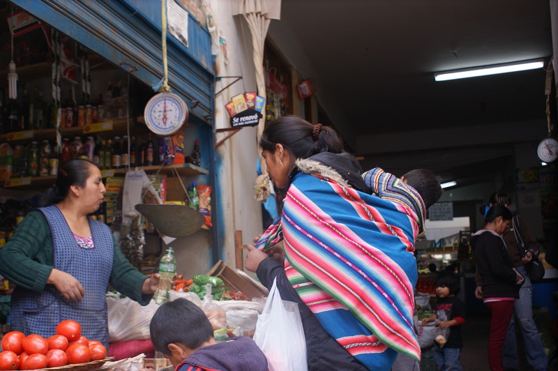 e un’altra delle scene tipiche, i bambini portati negli aguayos, ripiegati a sacco e ben legati dietro le spalle.
